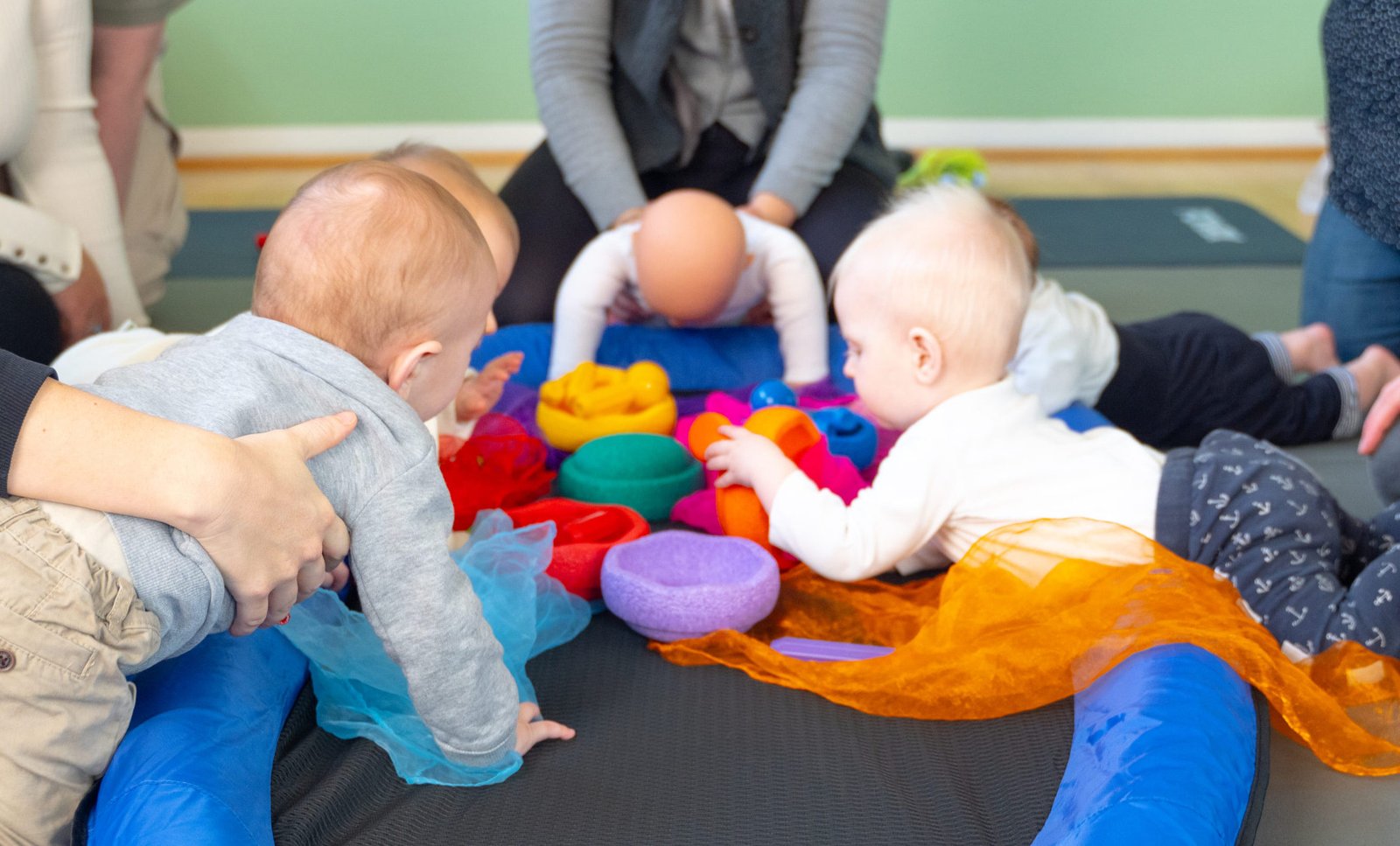 Ich möchte gemeinsam mit Ihnen und Ihren Babys (ab dem 3. Monat) in einer entspannten Atmosphäre, fern ab vom wuseligen Alltag mit motorisch sensorischen Angeboten die Welt erkunden. Mit einfachen Tricks, Spielen und Liedern können wir die Eltern-Kind Beziehung stärken und den Babys die Möglichkeit schenken, schon früh die Welt und die anderen Kinder zu „entdecken“.